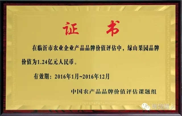 近日,由浙江大學(xué)CARD中國農(nóng)業(yè)品牌研究中心發(fā)起,中國農(nóng)產(chǎn)品品牌價值評估課題組對臨沂市農(nóng)業(yè)企業(yè)產(chǎn)品品牌價值評估報告出爐。山東輝煌食品有限公司旗下品“綠山果園”品牌價1.24億元人民幣。這是輝煌公司眾多榮譽中近日又獲得一項殊榮,輝煌人將繼續(xù)秉承“互利共贏、基業(yè)長”的經(jīng)營理念,“誓做中國罐頭行業(yè)第一品牌”的企業(yè)愿景,將企業(yè)做大做強,造福員工,回饋社