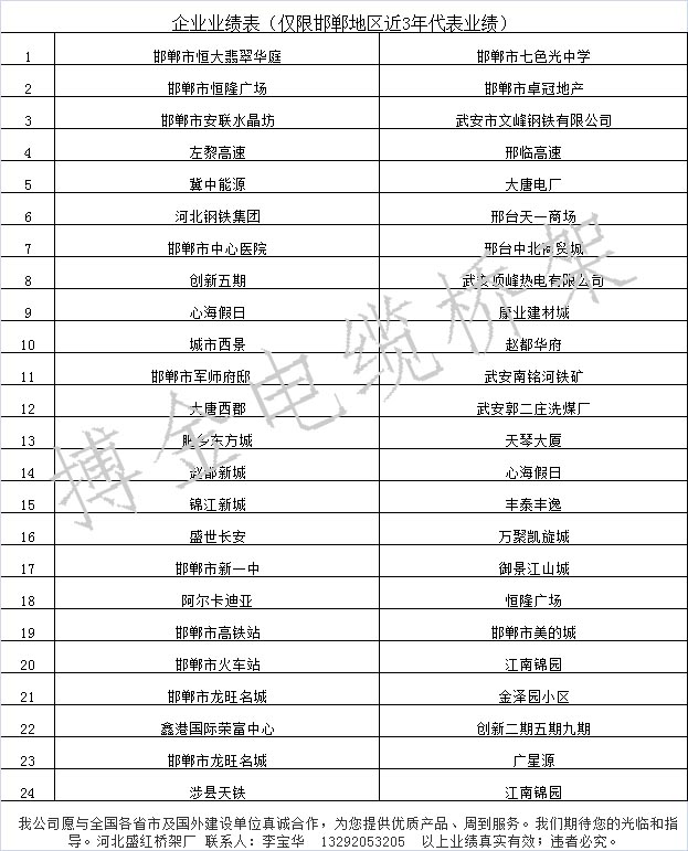 電纜橋架廠公布近年工程業(yè)績(jī)啦!!!